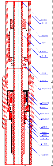 泵。主要由泵筒系統(tǒng)和柱塞系統(tǒng)組成。泵筒系統(tǒng)由泵筒、固定凡爾外殼、導(dǎo)流擋塊、護管等組成;柱塞系統(tǒng)由加長桿、柱塞中心桿、柱塞、柱塞凡爾座、柱塞凡爾體、固定凡爾體、小泵筒、滑動密封桿等組成。(結(jié)構(gòu)見附圖)其主要技術(shù)特點有: